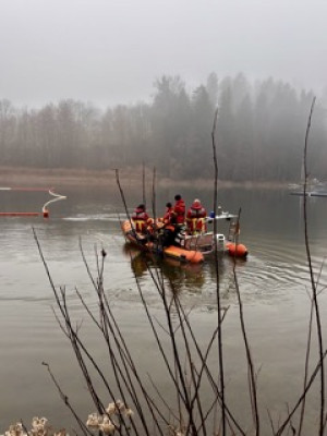 Am 14.12.2025 fand die Jahresabschlussübung der DLRG Einsatzgruppe Schussental am und um das Flappachbad Ravensburg statt. In einem realistischen Übungsszenario mussten vier verunfallte Personen gerettet und versorgt werden. Eine Person galt als unter Wasser vermisst, während sich zwei weitere Verletzte an einem steilen Abhang befanden. Die Strömungsretter übernahmen die schonende Rettung der beiden Personen vom Abhang mithilfe von Seiltechnik, während unsere Taucher die untergegangene Person erfolgreich fanden. Unterstützt wurden wir dabei von der Johanniter-Unfall-Hilfe, die mit ihrem Einsatzleitwagen vor Ort waren. Zum Abschluss der letzten Übung in diesem Jahr besprachen wir diese mit einem Lagerfeuer, Punsch und Gegrilltem.
