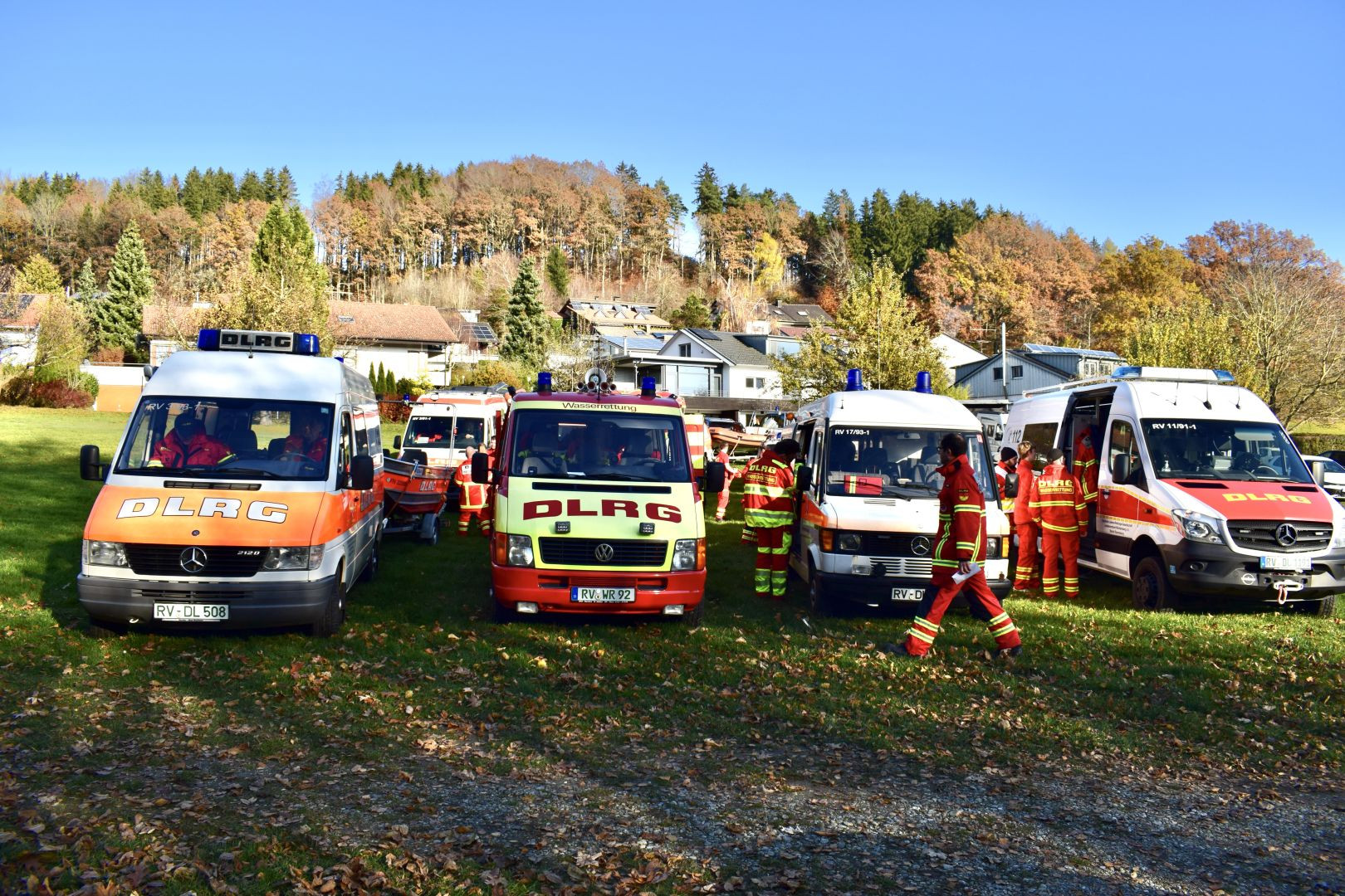 Die am selben Tag stattfindende Bezirksübung startete mit einem kurzen Vortrag zum Thema Fahren im Verband, bevor die insgesamt knapp 40 Einsatzkräfte mit zehn Fahrzeugen im geschlossenen Verband zum Übungsort, dem Illmensee, ausrückten. Das angenommene Szenario: Ein Jetski war mit einer Person untergegangen, eine weitere Person wurde ebenfalls vermisst.